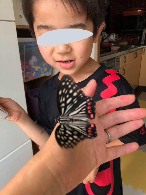 ちなみに、夏休みの最初の頃に、息子の朝顔を食べていた巨大なイモムシがいたのですが、「もしかして羽化してもどってきた?」と、我が家で話題になりました。