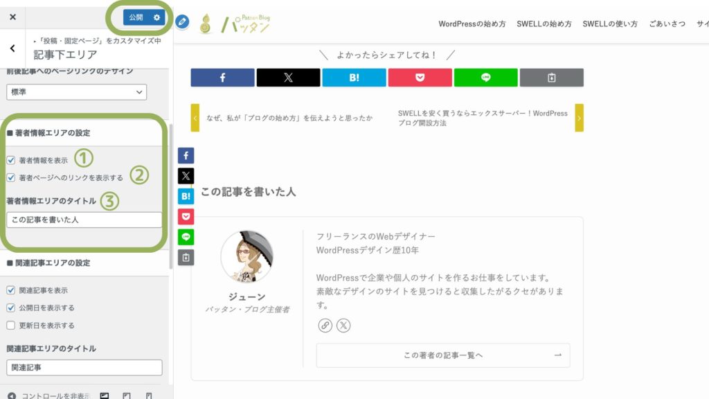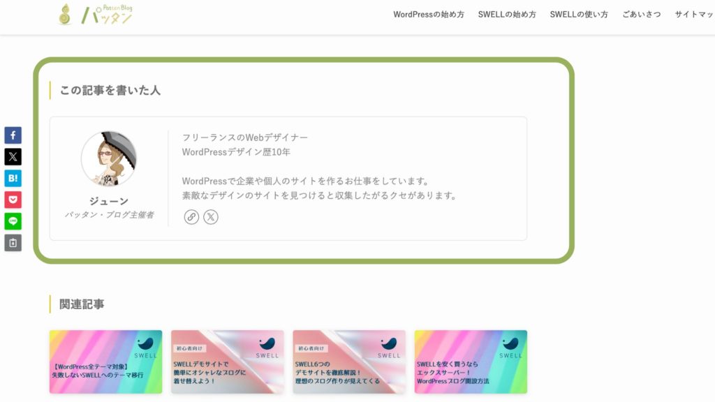 今回は、WordPressテーマ「SWELL」のブログ記事の下に表示される「この記事を書いた人」の設定について解説します。