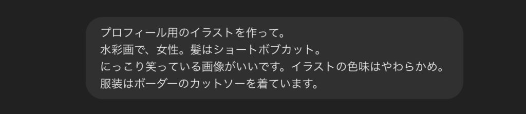例えば、Chat GTPでこんなプロンプトを書いてみました。