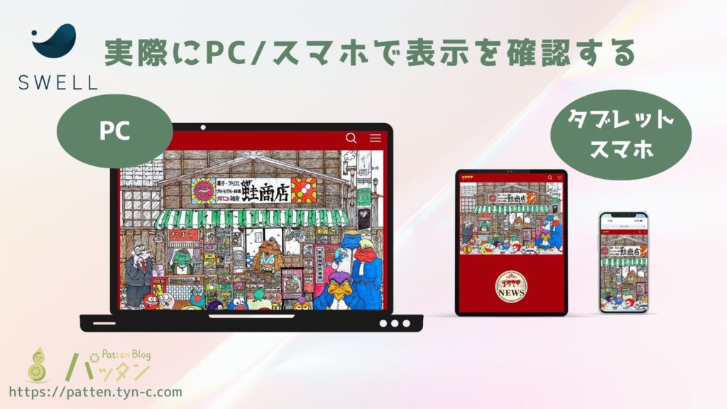 モバイル端末での表示が崩れないように、SWELLの設定を使ってレスポンシブ対応を確認します。