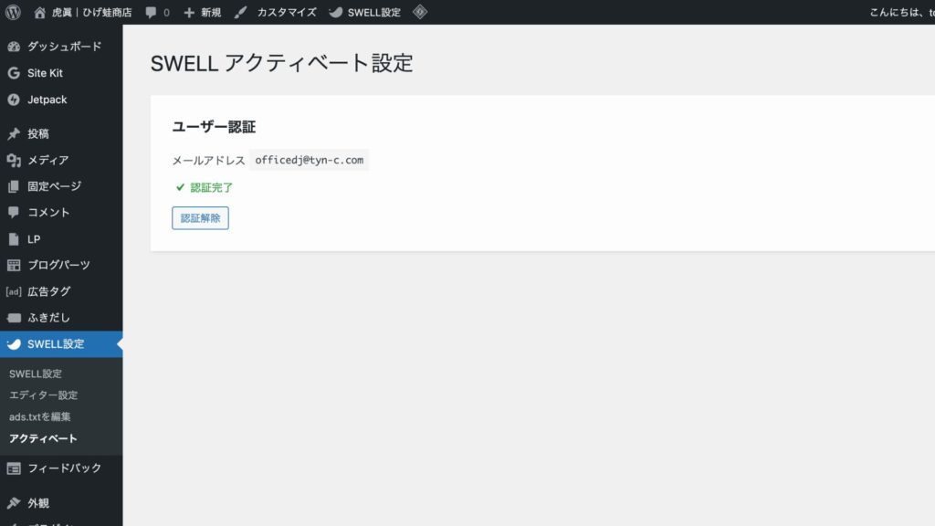 管理画面へアクセスしてください【SWELL設定】→【アクティベート】ページを開きます。